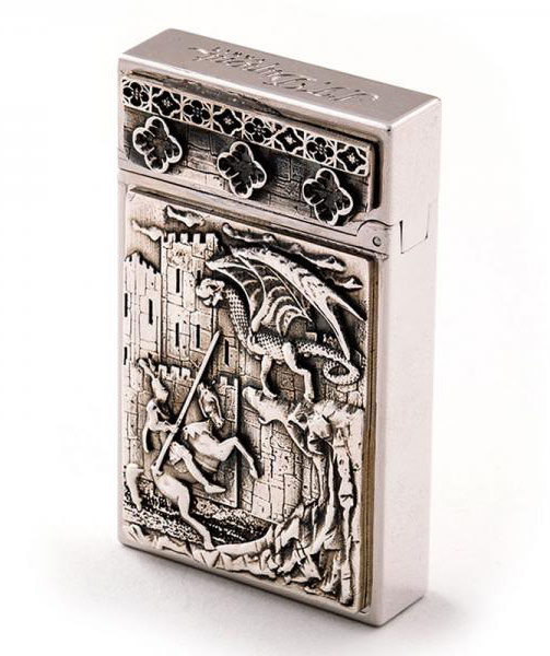 Газовая зажигалка с гравюрой Святого Георгия от S.T Dupont, выполненная из бронзы с серебряным накраплением из лимитированной коллекции Saint Georges