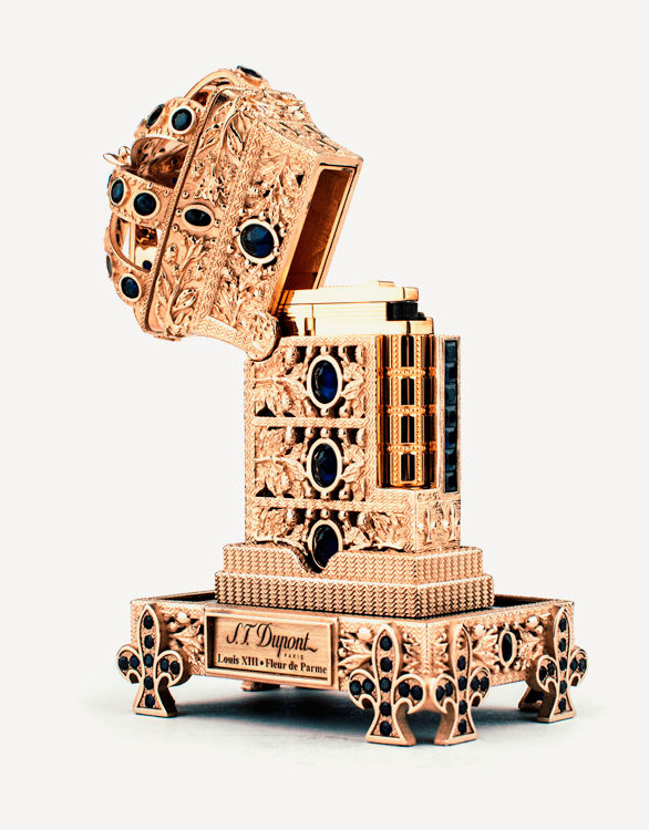 Вдохновившись мотивами эпохи Возрождения и историей французской монархии, дизайнер Таня Бурбон-Пармская создала восхитительную настольную зажигалку ручной работы, отделанную натуральным синим лаком и цельным золотом с резным узором. Модель Louis XIII Fleur de Parme, украшенная 152 сапфирами общим весом 46,6 карата, стала самой дорогой в мире декоративной зажигалкой.