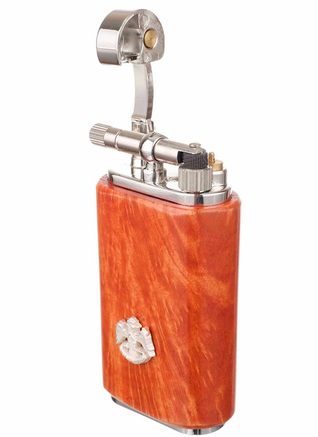 Корпус отделан из массивом бриара — корнекапа древовидного вереска — красивого и дорогого материала, из которого изготавливаются курительные трубки. Шильд из серебра 925 пробы. Поставляется в фирменном кисете и подарочной коробке
