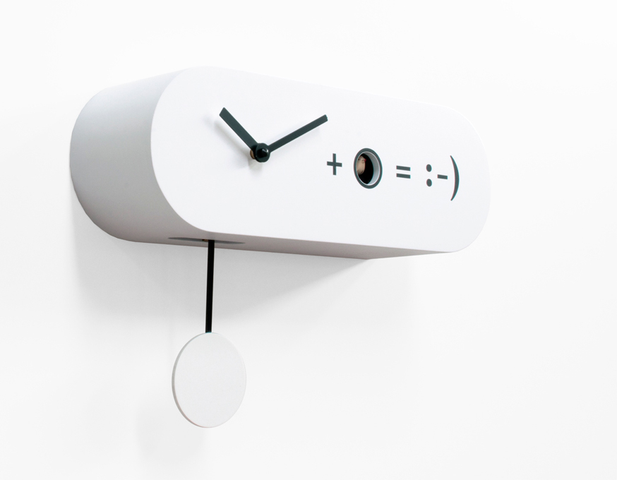 Часы эллиптической формы, изготовлены из дерева, в двух версиях: одна с оранжевым маятником с-образной формы, другая без маятника с белой нижней частью с множеством разноцветных кругов разного радиуса. Батареи кварцевый механизм. Кукушка имеет встроенный датчик ночного режима и автоматически выключается с наступлением темноты.