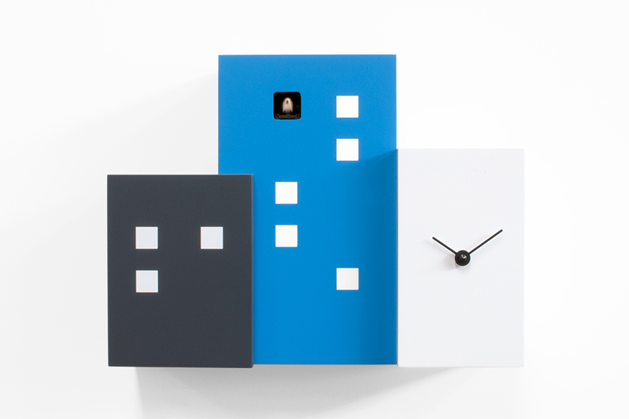 Дизайнерские часы "Wall Cu-Сu" от известного итальянского производителя Progetti благодаря трем объемам разной высоты и глубины, создают пейзаж современного города