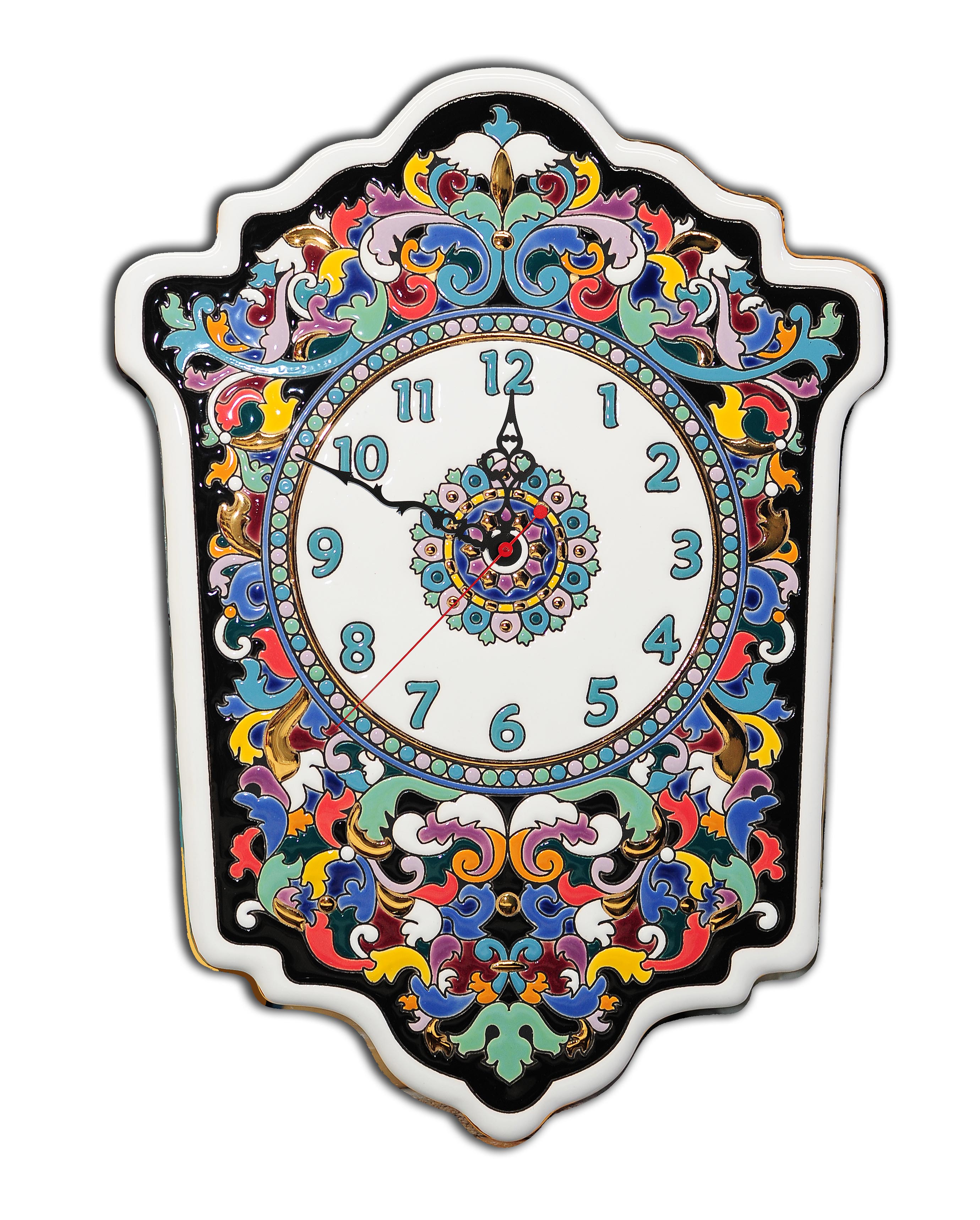 Интерьерные настенные часы ручной работы из керамики, отделка: позолота 24К, авторская роспись.