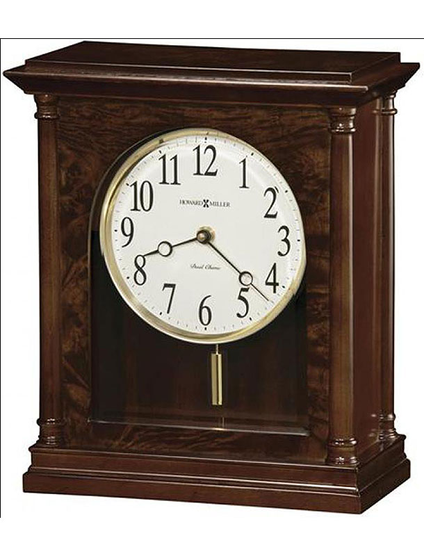 Деревянные колонны украшают все четыре угла корпуса; шпон с каповыми наплывами на фасадной и верхней панелях придают этим часам печать роскоши. Переднее ограненное стекло, циферблат молочного цвета, ободок из полированной латуни, арабские цифры, стильные черные стрелки. Уникальный цилиндрический маятник и ободок циферблата, отделанные полированной латунью, составляют единый ансамбль. Кварцевый механизм Kieninger, две мелодии на выбор «Вестминстер» или «Аве Мария» с боем полных часов, опция звучания мелодии для 4/4 часа играет 1/4, 1/2 и 3/4 часа соответственно. Регулировка громкости, автоматическое ночное уменьшение громкости звука, автоматическое ночное отключение мелодии и боя. Требуется 2 батарейки типа С (не включены в поставку). Корпус изготовлен из отборных пород твердого дерева и покрыт шпоном. Тонирование и полировка корпуса выполнены в цвете Вишни Американа (Americana Cherry). Размеры: 12 x 25 x 29 см