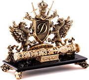 Перьевая ручка S.T Dupont из лимитированной коллекции Armories на постаменте из бронзы с напылением из желтого золота и фирменной гравировкой