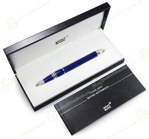 Перьевая ручка коллекции Montblanc Starwalker, корпус с гильошированием, покрыт ярко синим лаком, покрытие деталей ручки: платина. Подарочная коробка.